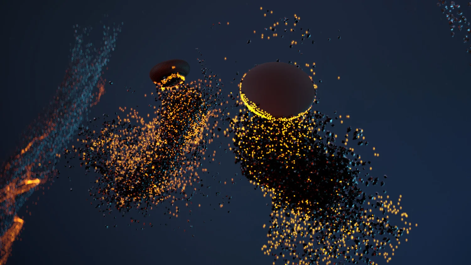 Particles forming the controllers were done in time reversal since emitting particles from the components gave a better result than simulating them going into the components. To randomize the solid particles, I used VEX (attribute wrangles) over copy stamps to increase performance.